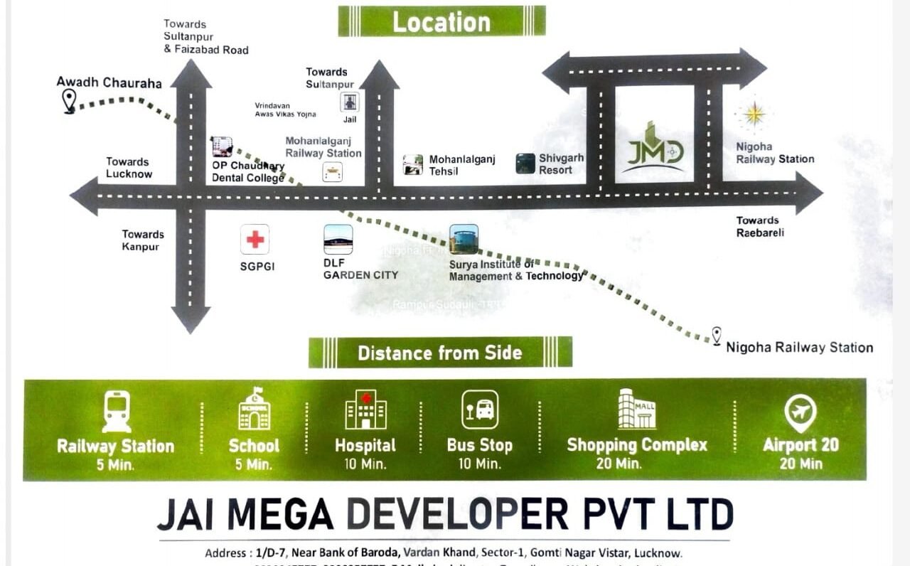 Whether you’re looking for plots for sale in Lucknow, investing in a farmhouse near Gomti Nagar, or exploring affordable residential plots, JMD Reality is your go-to real estate partner. Our offerings start from just ₹1599/- Sq. Ft., with plot sizes starting from 10,000 sq. ft. in gated communities.